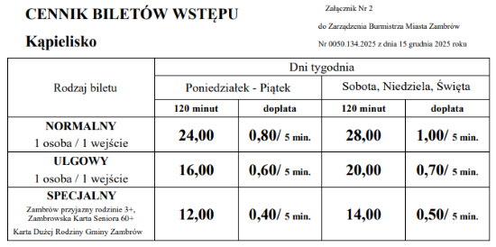 Od 1 stycznia 2026 roku zmienił się cennik wszystkich usług Pływalni Miejskiej "Delfin" w Zambrowie.