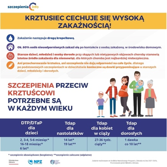 Od połowy 2023 roku w krajach UE/EOG i krajach sąsiednich pogorszyła się sytuacja epidemiologiczna krztuśca. Odnotowano wzrost liczby zachorowań (Belgia, Chorwacja, Dania, Hiszpania, Szwecja, Norwegia) i pierwsze przypadki zgonów z powodu krztuśca (Czechy, Holandia). Chorują osoby w każdym wieku, większość to dzieci i nastolatki. Część przypadków dotyczy również niemowląt, które ze względu na wiek nie otrzymały jeszcze wszystkich dawek schematu podstawowego szczepienia przeciw krztuścowi.Od 1 stycznia do 15 kwietnia 2024 r. w Polsce rozpoznano 1053 przypadków tej choroby, w tym 206 hospitalizacji. W analogicznym okresie ubiegłego roku odnotowano 273 zachorowania, a w całym 2023 r. - 927.
