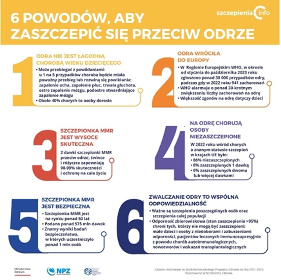 Od 1 stycznia do 15 kwietnia 2024 r. w Polsce zarejestrowano 75 przypadków odry, w tym 29 hospitalizacji. W takim samym okresie ubiegłego roku było 10 przypadków, a w całym 2023 roku na odrę zachorowało 36 osób. Od początku roku odnotowuje się ogniska odry, skupione przede wszystkim wokół największych miast: Wrocławia, Poznania, Warszawy. Są hospitalizacje dzieci z powikłaniami odry, czyli ciężkimi zapaleniami płuc.