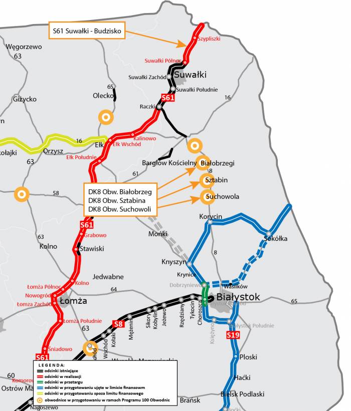 W ramach inwestycji powstaną nowe odcinki drogi klasy GP (głównej o ruchu przyspieszonym) w ciągu drogi krajowej nr 8 o łącznej długości prawie 25 km. Dodatkowo Minister Infrastruktury uzgodnił aneks do Programu inwestycji dla zadania obejmującego budowę odcinka drogi ekspresowej S61 Suwałki – Budzisko.
