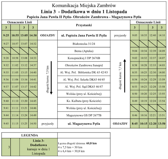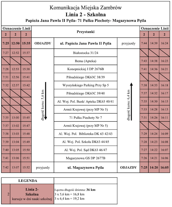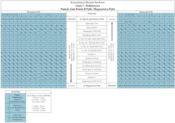 Obowiązuje nowy rozkład jazdy autobusów komunikacji miejskiej w Zambrowie. Poniżej przedstawiamy aktualny rozkład jazdy komunikacji miejskiej w Zambrowie: