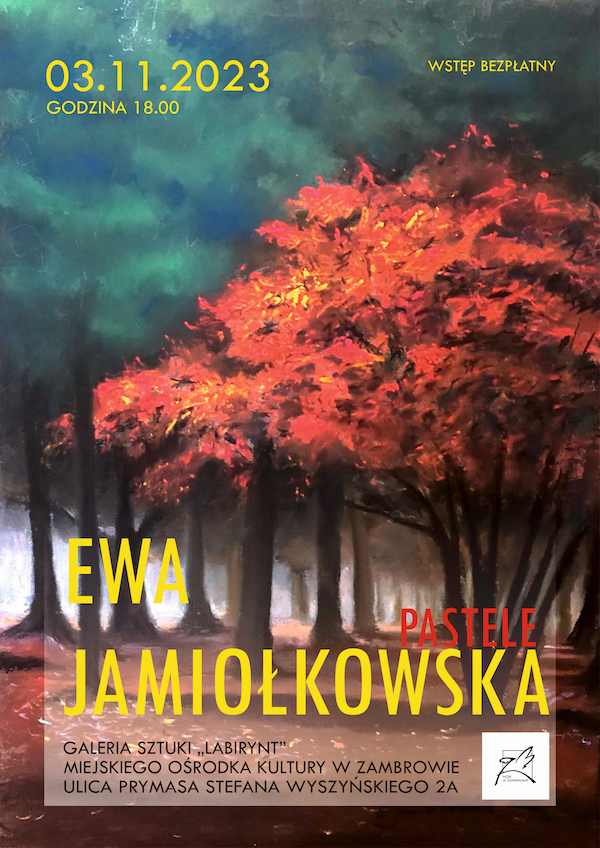 Wernisaż wystawy Ewy Jamiołkowskiej pt. "Pastele" odbędzie się w piątek, 3 listopada w Galerii Sztuki „Labirynt” Miejskiego Ośrodka Kultury w Zambrowie.