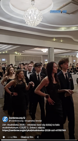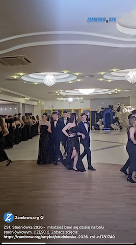 Tegoroczni maturzyści z Zespołu Szkół Nr 1 w Zambrowie bawią się dzisiaj, 17 stycznia na balu studniówkowym w sali pana Leszczyńskiego przy ul. Fabrycznej 10. W wydarzeniu bierze udział około 184 osób. Wśród gości obecni są Wicestarosta Zambrowski Robert Maciej Rosiak, Przewodniczący Rady Powiatu Zambrowskiego Jacek Norbert Murawski, proboszcz parafii pw. Trójcy Przenajświętszej w Zambrowie ks. prał. dr Wojciech Nowacki wraz z księdzem Mateuszem Dobrzyckim, dyrekcja, rodzice oraz nauczyciele.