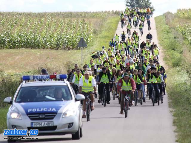 Dzieci, młodzież i dorośli, całe rodziny, uczniowie, studenci, nauczyciele, księża, siostra zakonna, urzędnicy, prawnicy, sportowy, przedsiębiorcy, emeryci, słowem - przedstawiciele wszystkich grup wiekowych i zawodowych, w sumie ponad 250 osób, wyruszyło pod eskortą policji z Wydziału Ruchu Drogowego zambrowskiej Komendy, spod kościoła Trójcy Św. ulicą Cmentarną. Następnie przejechali ulicami: Łąkową, Ostrowską, Polową i Łomżyńską. Za Zambrowem kolumna rowerzystów skręciła w lewo w kierunku na Tabędz. Tam, przy zabytkowym drewnianym kościele urządzono krótki postój. Następnie za Tabędzem wszyscy skręcili w prawo i przejeżdżając przez miejscowości: Zagroby-Zakrzewo, Pstrągi-Gniewoty i Bacze Mokre, asfaltową drogą dotarli do Czerwonego Boru.