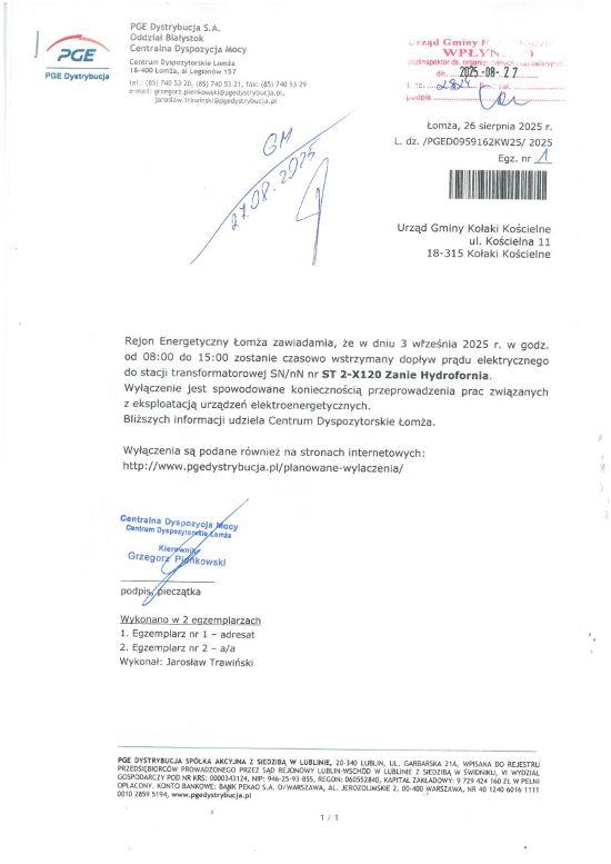 Urząd Gminy Kołaki Kościelne poinformował, że w środę, 3 września od godziny 8:00 do godziny 15:00 nastąpi przerwa w dostawie wody ze Stacji Uzdatniania Wody Zanie-Leśnica.