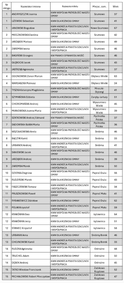 Wybory samorządowe już w najbliższą niedzielę, 7 kwietnia. Oprócz wójta, mieszkańcy gminy Szumowo wybiorą również radnych gminy, powiatu i sejmiku wojewódzkiego. Poniżej przedstawiamy listy kandydatów, na których będą mogli oddać swoje głosy mieszkańcy gminy Szumowo.