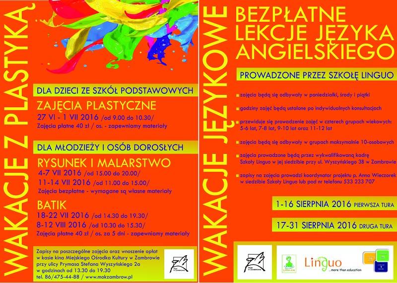 Wakacje! Na tę chwilę wszystkie dzieci czekały od września. Miejski Ośrodek Kultury w Zambrowie zadbał, aby każdy mógł ciekawie spędzić czas odpoczynku od zajęć szkolnych.
