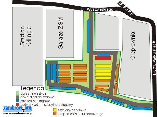 Nowa powierzchnia handlowa będzie miała w sumie 1100 m2, w tym: 158 m2 w murowanych pawilonach, 144m2 - zaplecze administracyjno - socjalne w murowanym budynku oraz 828m2 w 36 pawilonach typu lekkiego.