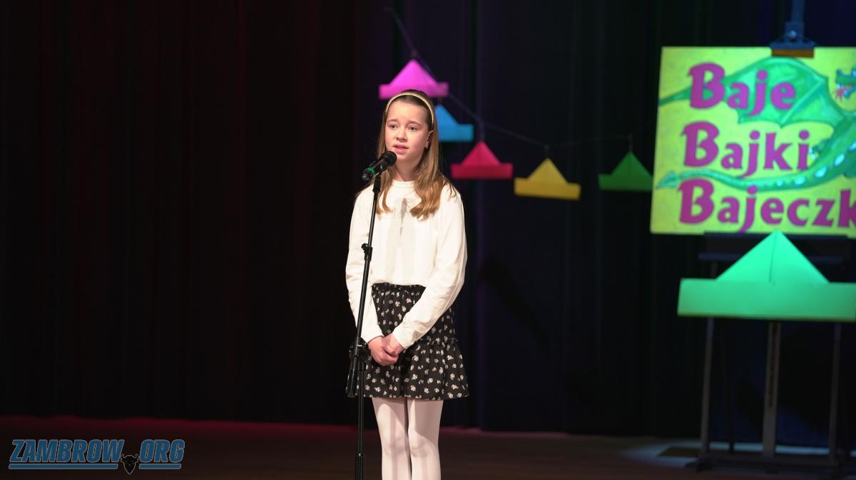 Galeria zdjęć z XXXVII Małego Konkursu Recytatorskiego Baje, Bajki, Bajeczki w Miejskim Ośrodku Kultury w Zambrowie. Uczniowie szkół podstawowych z powiatu zambrowskiego w trzech kategoriach wiekowych prezentowali wiersze m.in. Brzechwy, Gellner, Niewiadomskiej i Tuwima. Komisja oceniała wyraz artystyczny, mowę i formę prezentacji. Losowanie laureatów za tydzień.