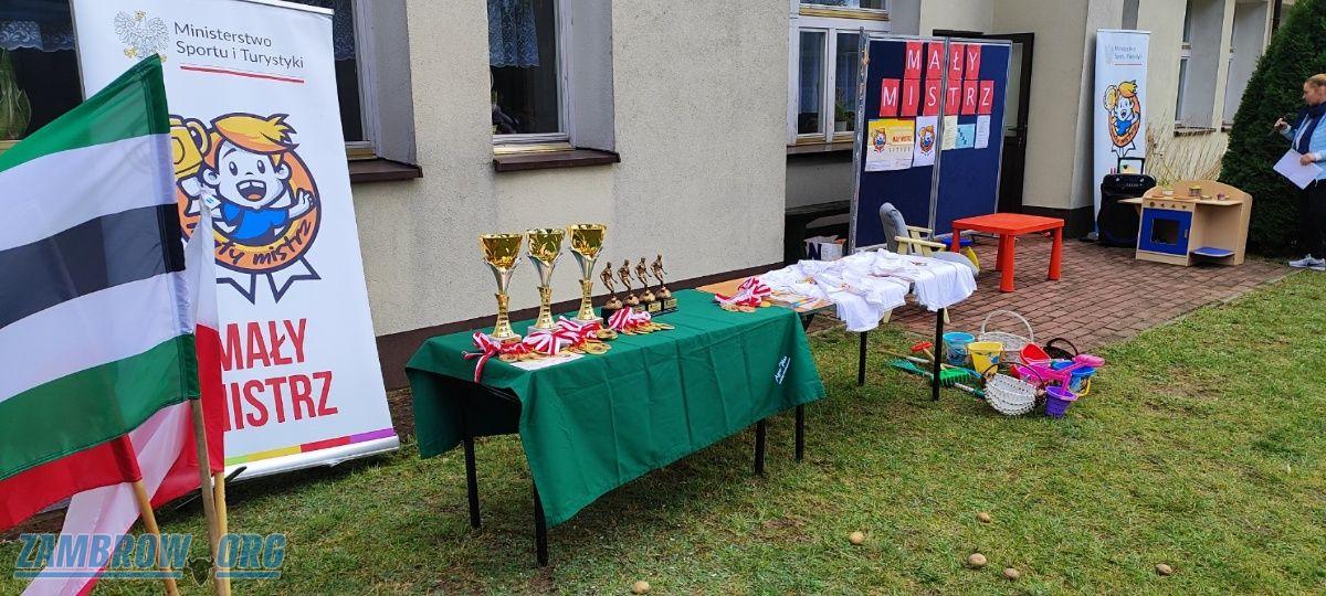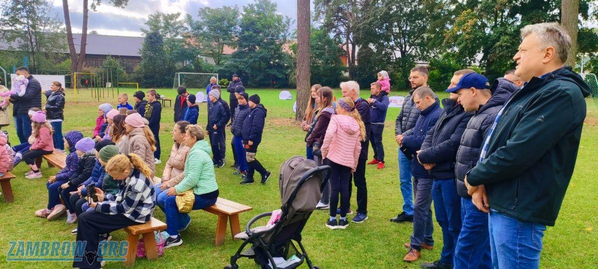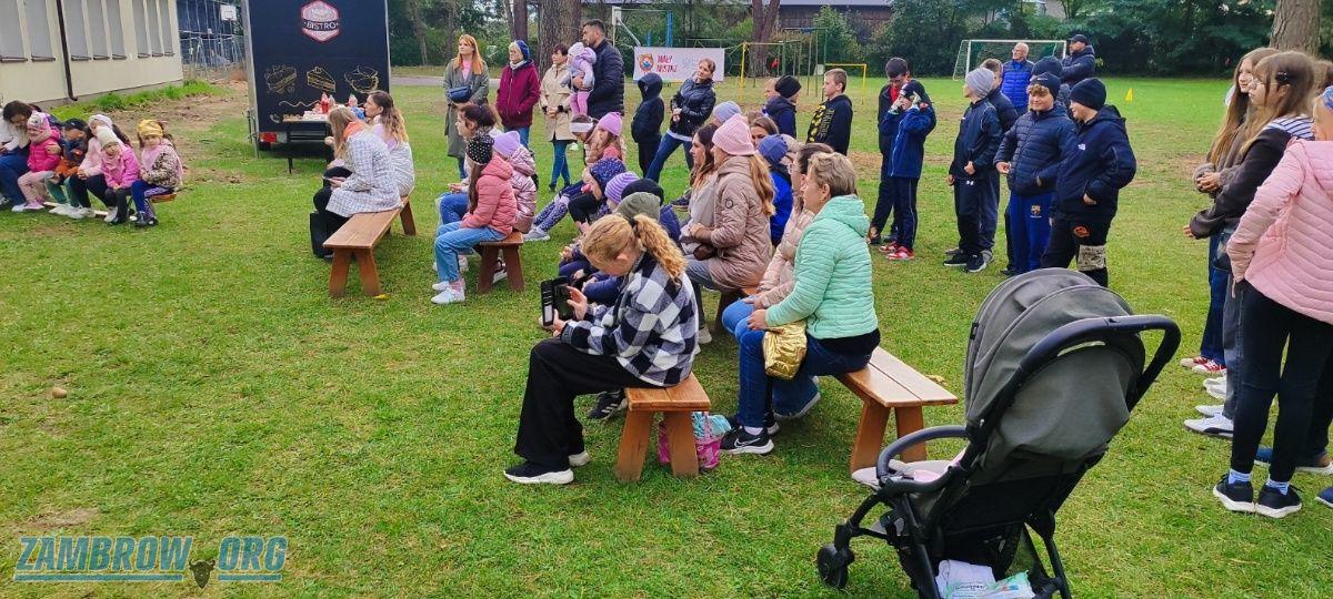 Fotografie z festynu sportowo-rekreacyjnego programu Mały Mistrz w Szkole Podstawowej w Starym Skarżynie prezentują pełne zaangażowania uczniów klas młodszych rywalizujących w konkurencjach sprawnościowych. Widoczna jest radość z aktywności fizycznej oraz nauka zasad fair play i współpracy. Warto zauważyć, jak doświadczony sędzia Zenon Mościcki motywuje uczestników do wysiłku, wspierając ich podczas sportowych zmagań, wzbudzając emocje, uśmiech i doping zarówno ze strony nauczycieli, jak i rodziców.