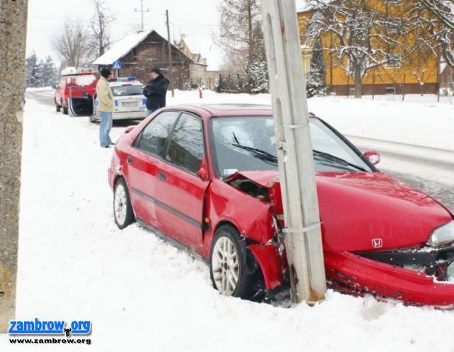 Pijany kierowca wjechał w słup trakcji elektrycznej. Fot. KWP Białystok