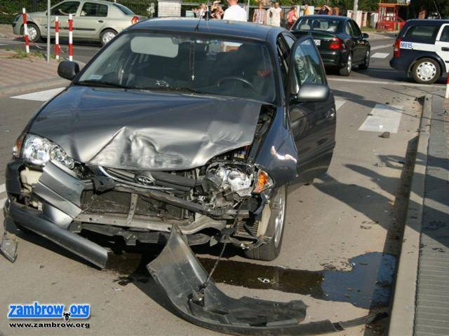 Skutki wypadku na skrzyżowaniu ul. Podedwornego i M. Konopnickiej w dn. 09.08.2009 r.