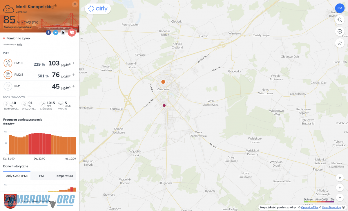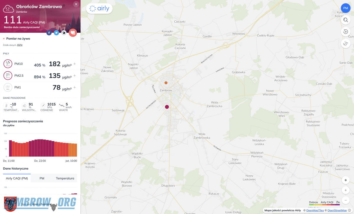 Normy zanieczyszczenia powietrza w Zambrowie znacznie przekroczone