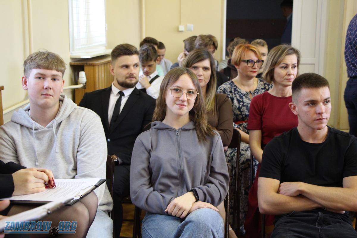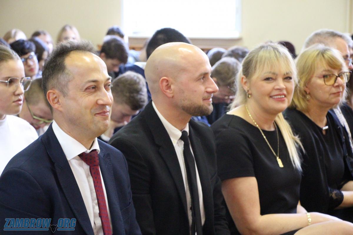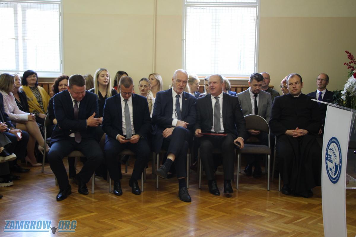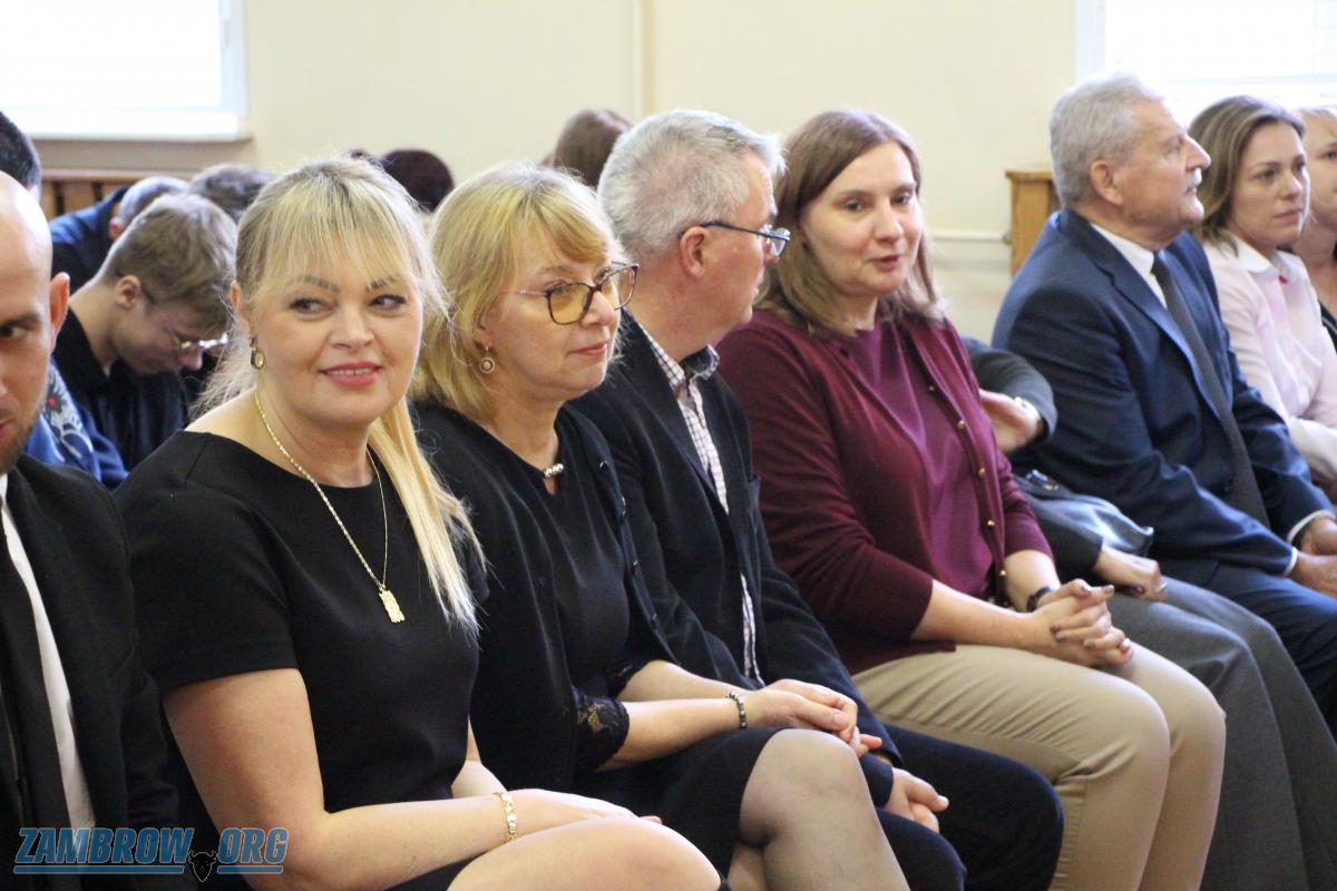 Galeria zdjęć z uroczystości z okazji Dnia Edukacji Narodowej w Zespole Szkół Agroprzedsiębiorczości w Zambrowie. Senator Marek Adam Komorowski, Wicestarosta Robert Rosiak i inni uczestnicy uczcili pracę nauczycieli. Dyrektorzy, m.in. Barbara Chrapczyńska i Wiesław Maleszewski, oraz nauczyciele, jak Arkadiusz Sawicki, otrzymali zasłużone nagrody. Na zakończenie młodzież zaprezentowała się artystycznie, dostając owacje na stojąco, a nauczyciele podziękowania w postaci róży. Celebracja pełna wzruszeń i uznania dla ludzi wpływających na edukację młodego pokolenia.
