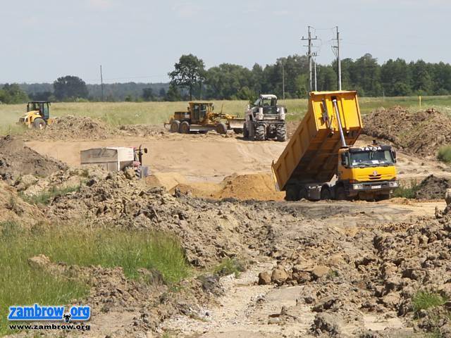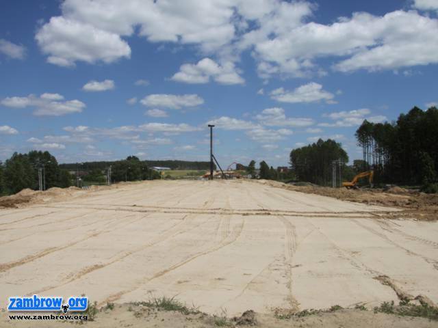 Budowa obwodnicy Zambrowa i Wiśniewa. Stan prac na 18.06.2010 r. Przygotowanie podbudowy pod główną część obwodnicy w okolicy ul. Łomżyńskiej