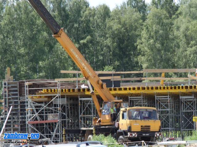 Budowa obwodnicy Zambrowa i Wiśniewa. Stan prac na 18.06.2010 r. Budowa filarów wiaduktu na drodze krajowej nr 63