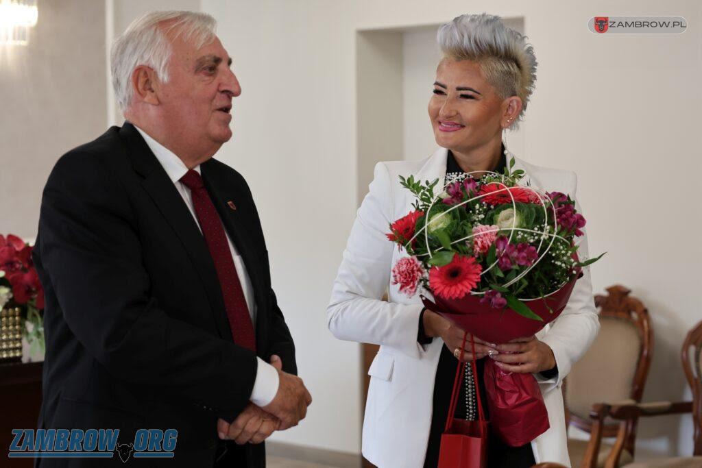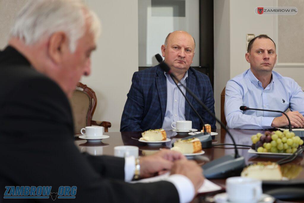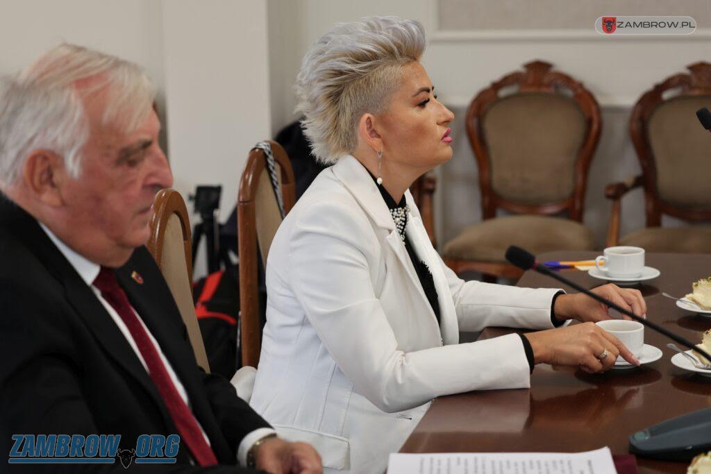 Galeria zdjęć z spotkania Podlaskiego Kuratora Oświaty Agnieszki Krokos-Janczyło w Zambrowie. Burmistrz Kazimierz Dąbrowski omawia statystyki szkół, a Kurator odpowiada na pytania dot. reform oświatowych. Dyrektorzy i nauczyciele przedstawiają swoje kwestie, a na zakończenie odwiedzane są placówki oświatowe.