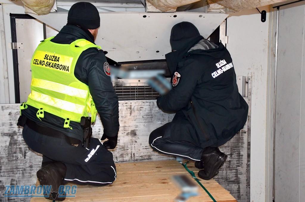 Galeria przedstawia zdjęcia z zatrzymania ciężarówki z chłodnią na trasie S61 blisko granicy polsko-litewskiej przez funkcjonariuszy Służby Celno-Skarbowej z Budziska. Mundurowi znaleźli w środku 2700 paczek papierosów z białoruskimi znakami akcyzy o wartości ponad 40 tys. zł. Białoruski kierowca odpowie przed sądem za przemyt, grozi mu kara grzywny.