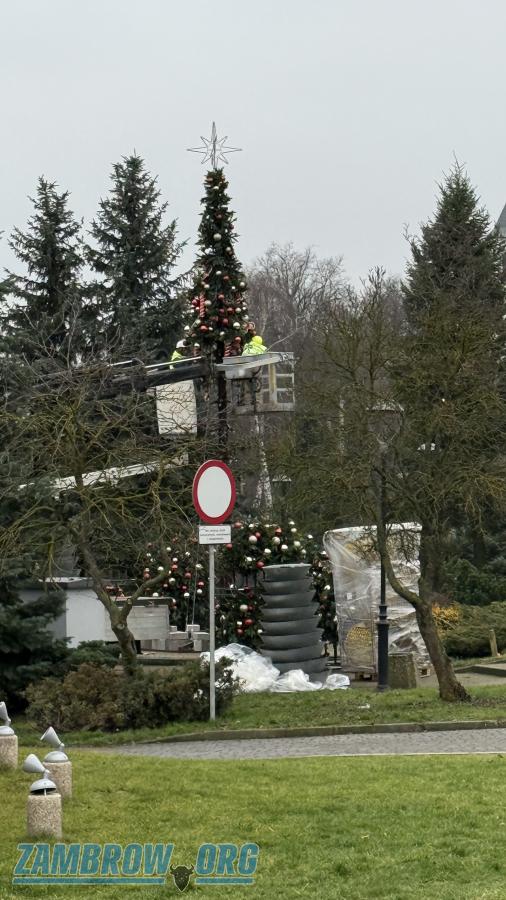 Rozpoczął się montaż choinki przy zalewie w Zambrowie [FOTO+VIDEO]