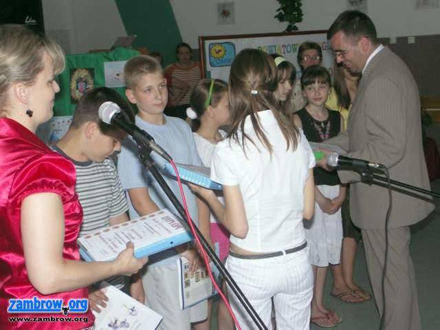 Starosta Zambrowski Stanisław Rykaczewski wręcza nagrody w kat. szkół podstawowych /Fot. Grzegorz Zawistowski