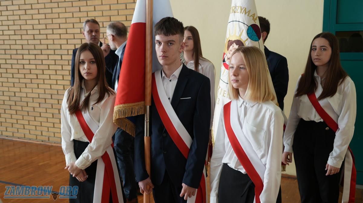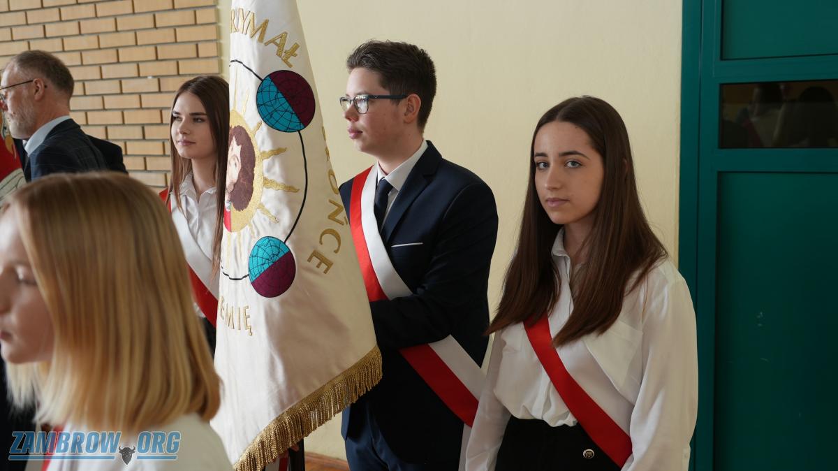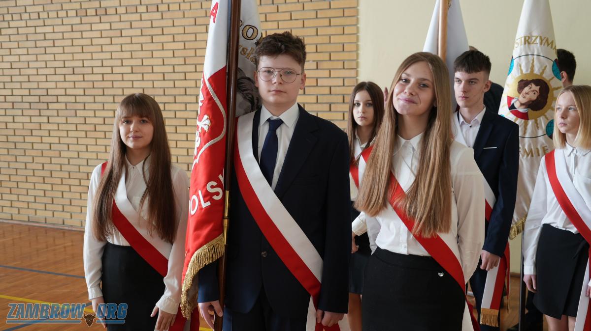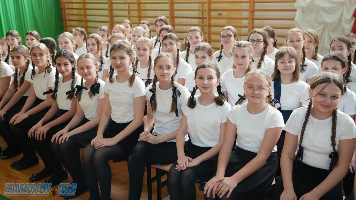 Galeria zdjęć z uroczystości obchodów Święta Patrona - Władysława Broniewskiego w Szkole Podstawowej Nr 4 w Zambrowie. Apel szkolny, montaż słowno-muzyczny, występy artystyczne i wręczenie nagród w konkursach recytatorskich oraz plastycznych. Uczniowie pełni pasji i zaangażowania prezentują twórczość patrona szkoły.