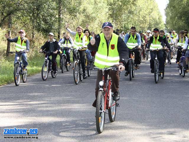 Akcja Zambrów na rowery. Kolumna rowerzystów dojeżdża do polanki modrzewiowej w Czerwonym Borze