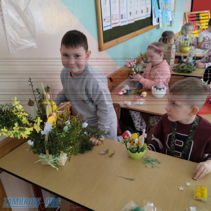 Wielkanocne warsztaty w zambrowskiej "Trójce". Pierwszoklasiści wykonali świąteczne stroiki [FOTO]