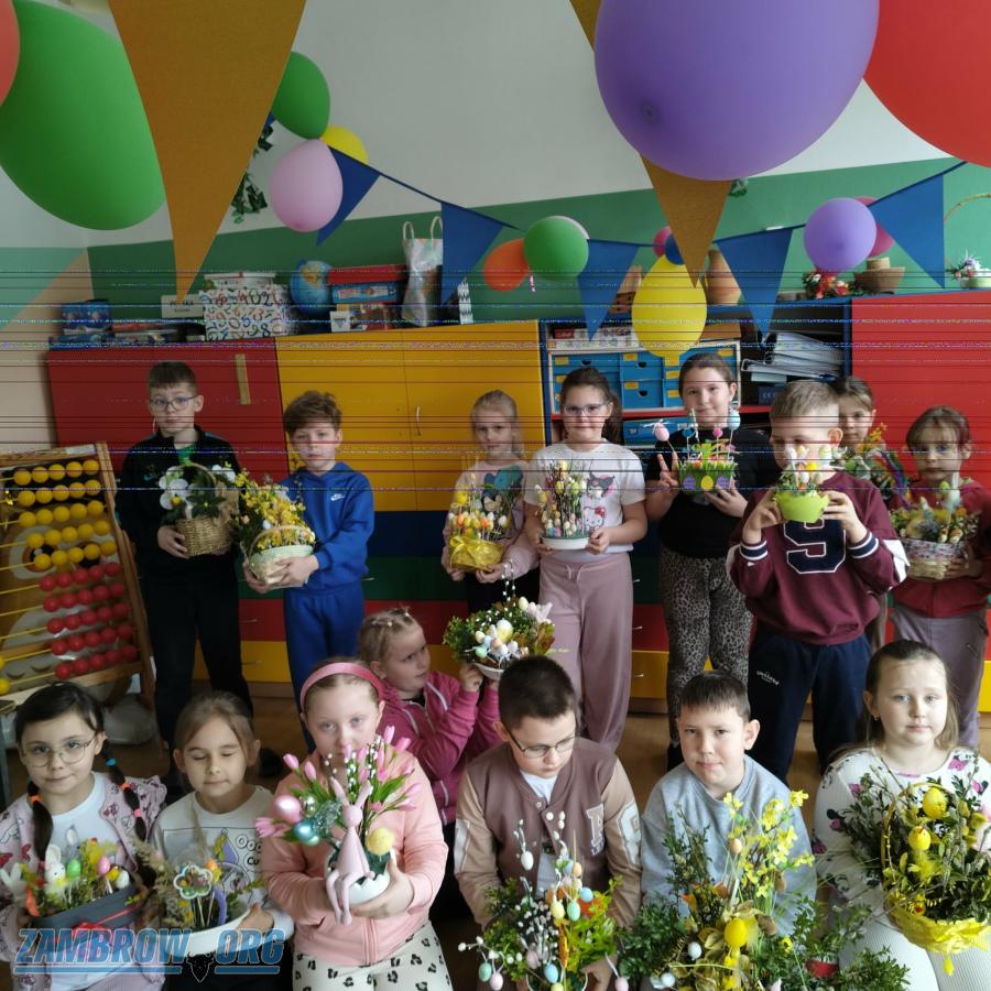 Wielkanocne warsztaty w zambrowskiej "Trójce". Pierwszoklasiści wykonali świąteczne stroiki [FOTO]