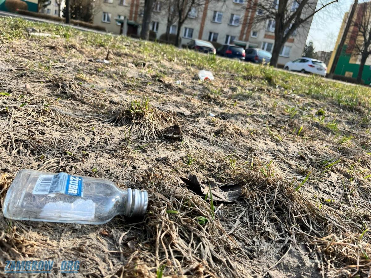 Zaśmiecona ul. Pileckiego w Zambrowie. "Małpki" na trawniku jak grzyby po deszczu, a urzędnik każe sprzątać mieszkańcom [FOTO+VIDEO]
