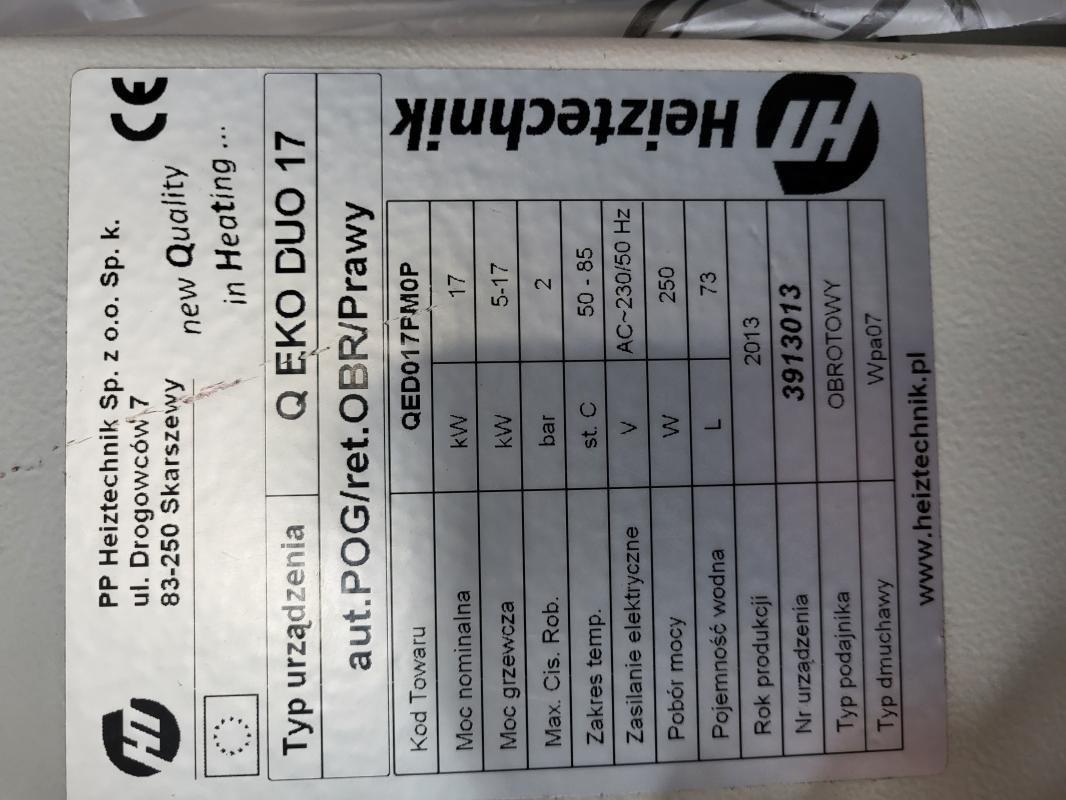 Piec heiztechnik 15-17kw sprzedaję z powodu wymiany na pompę ciepła. Piec użytkowany 7 lat ..polecam