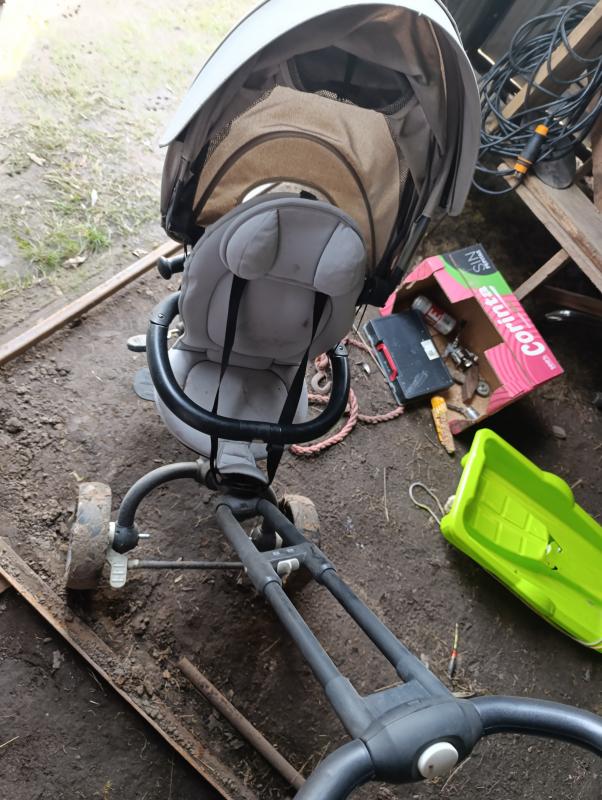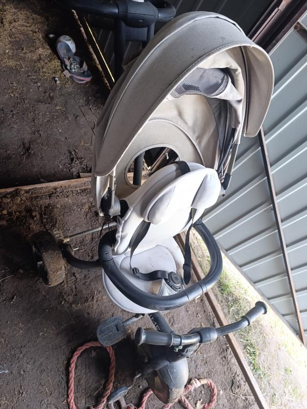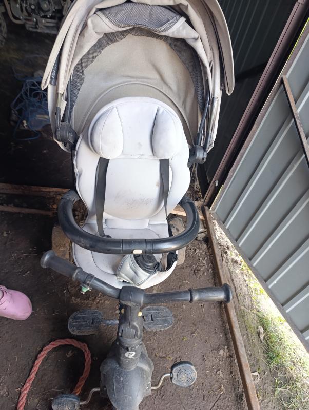 Rower trójkołowy co później może służyć jako zwykły rowerk bo wszystko się odczepia. Oraz jako spacerówka. Siedzisko z dużą obszerna budka ,przekręcane przód tył. I pochylane siedzisko