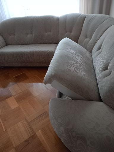 Sprzedam kanapę narożną (pojemnik na pościel i powierzchnia do spania) + fotel. Stan dobry