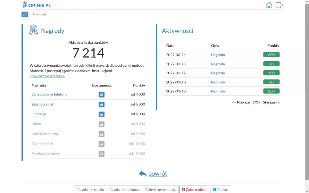 Zdobyte punkty możemy w łatwy sposób wymienić na nagrody: