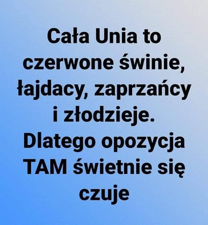 jak na razie to nikt ze wschodu nie naznacza nam premiera nie pisze ustaw i nie ustala składu sejmu nie zakłada parti zewnętrznej jawnie nie utrzymuje agentury Szczepan, to spiierd ...j z tej UE na wschód i tam dopiero sobie bedziesz smrodzil,albo dołacz do tego stada baranw co na obrazku umieściłeś.Rogi masz juz przyprawione przez kolege. bbbbbbbbbbeeeeeeeeeeeeeebbbeee,bbeeee<br>